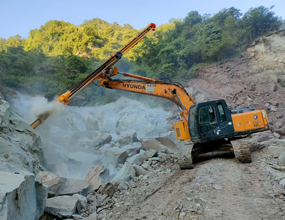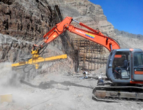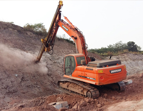 重慶九龍坡-斗山挖機(jī)改切削鉆機(jī)(90孔6米)-1分鐘2-3米