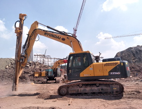 現(xiàn)代225挖機(jī)改裝切削鉆機(jī)120-150孔3.5米深