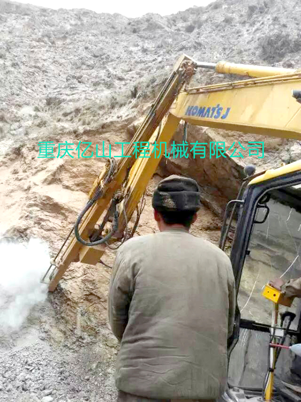 小松220挖機改全液壓鑿巖機工地現(xiàn)場