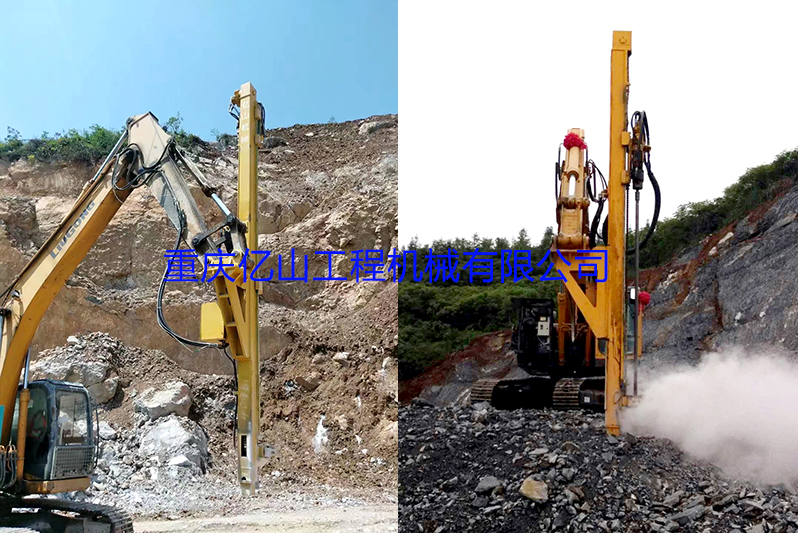湖南吉首-龍工225挖機(jī)改全液壓鑿巖鉆機(jī)(60-102孔徑一次進(jìn)桿3米可接桿到15米)