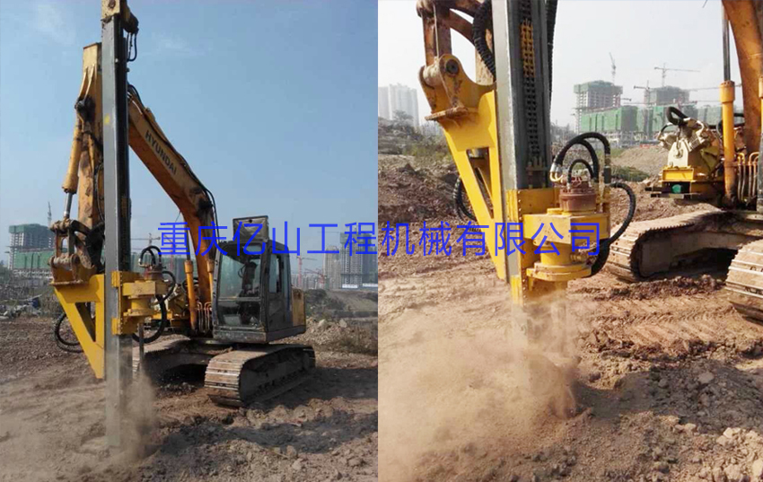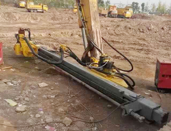 2、前后左右自由伸展,當(dāng)挖掘機(jī)在工地不平坦的情況下, 挖機(jī)手可根據(jù)位置不同調(diào)整鉆桿角度,保持90°垂直鉆孔。