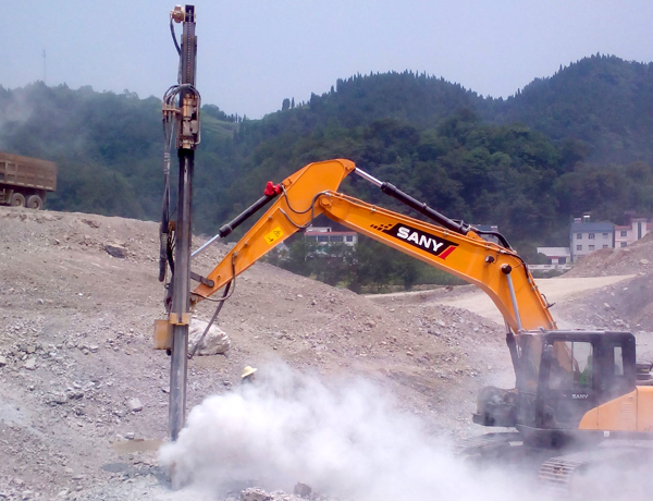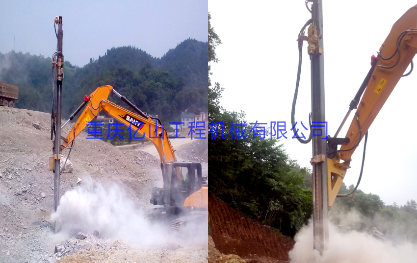 億山ES300挖改全液壓鑿巖機(jī),廣泛適用于花崗巖、石灰石、大理石、火山石、青石、玄武巖等硬度較高的堅(jiān)巖石的各種爆破前鉆孔作業(yè)(硬度F大于6級);可以借助挖機(jī)的操作靈活性用于錨桿鉆孔;也遠(yuǎn)遠(yuǎn)低于一體式鑿巖鉆機(jī)的采購價格。具操作簡易,設(shè)計(jì)人性化,感觀直接,實(shí)現(xiàn)挖掘機(jī)一機(jī)多用等特性。