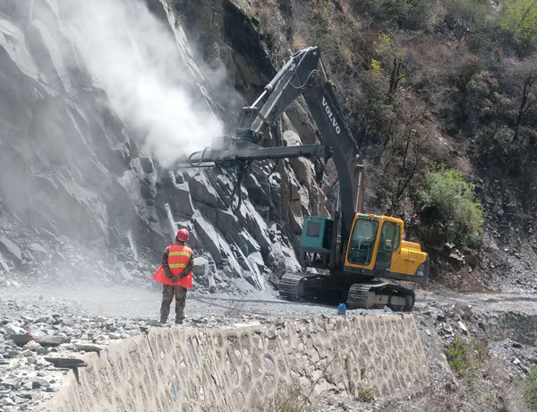 3、作業(yè)半徑擴(kuò)大化 。因為挖掘機(jī)小臂不拆,它的作業(yè)半徑可以延長作業(yè)半徑2-3米,且仰角打孔、水平打孔、豎直打孔都可以實現(xiàn)。