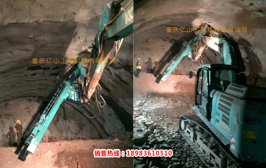 重慶奉節(jié)-神鋼210挖機(jī)改裝鑿巖機(jī)(雙轉(zhuǎn)盤隧道錨桿鉆機(jī))