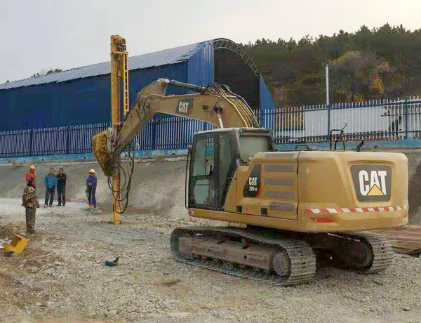 2、前后左右自由伸展,當挖掘機在工地不平坦的情況下, 挖機手可根據(jù)位置不同調(diào)整鉆桿角度,保持90°垂直鉆孔,爭取實現(xiàn)有效爆破。