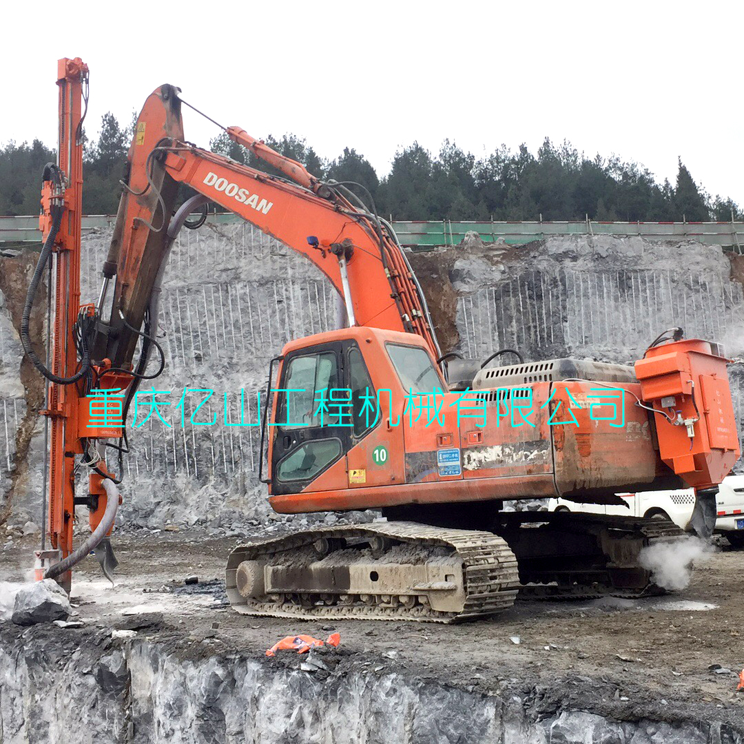 重慶酉陽(yáng)--斗山225挖機(jī)改全液壓鑿巖鉆機(jī)打80孔5.5米帶吸塵