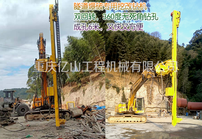 挖機(jī)改鉆機(jī)為您開(kāi)啟了新的施工方法。挖斗+破碎錘+切削鉆機(jī)+鑿巖鉆機(jī)+潛孔鉆機(jī),一機(jī)多用,為您降低成本。無(wú)論您是從事采石業(yè)、采礦業(yè)、土建工程、鋼鐵工業(yè)、隧道工程或路橋工程,在許多傳統(tǒng)方法失效或成本高的地方,您都可以借助這靈活、耐用、噪音小且震動(dòng)低的特種機(jī)器。