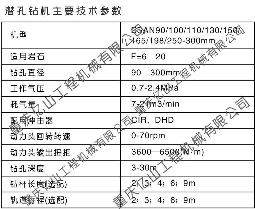 3.鑿巖孔徑范圍:90mm~400mm