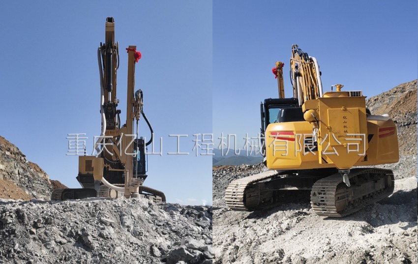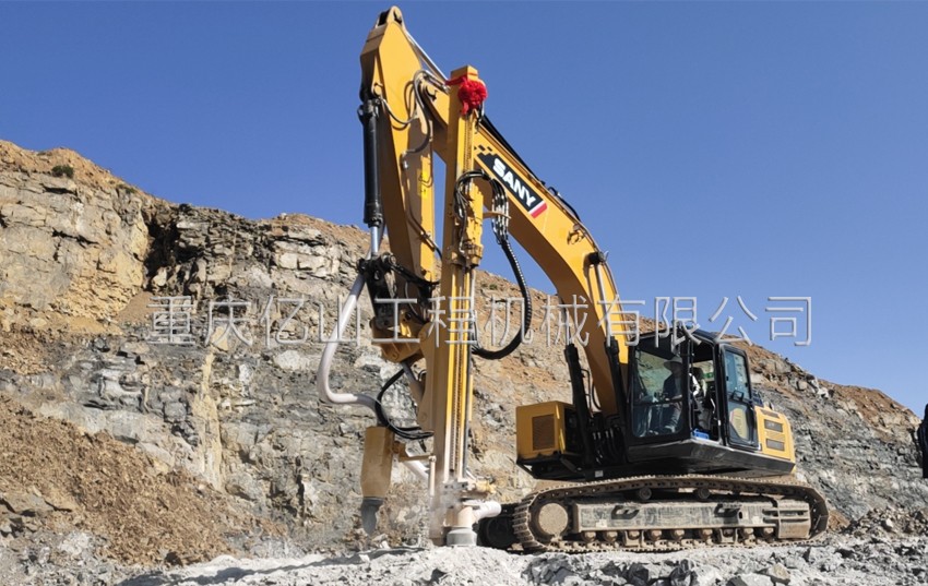 億山ES300挖改全液壓鑿巖機,廣泛適用于花崗巖、石灰石、大理石、火山石、青石、玄武巖等硬度較高的堅巖石的各種爆破前鉆孔作業(yè)(硬度F大于6級);可以借助挖機的操作靈活性用于錨桿鉆孔;也遠遠低于一體式鑿巖鉆機的采購價格。具操作簡易,設(shè)計人性化,感觀直接,實現(xiàn)挖掘機一機多用等特性。