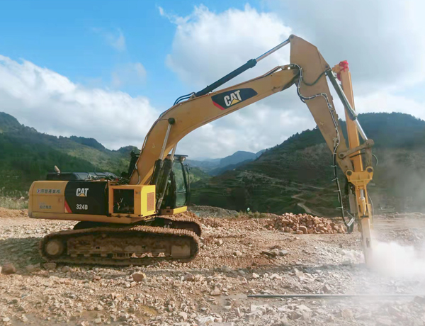 貴州凱里--挖掘機(jī)卡特改裝鑿巖機(jī)