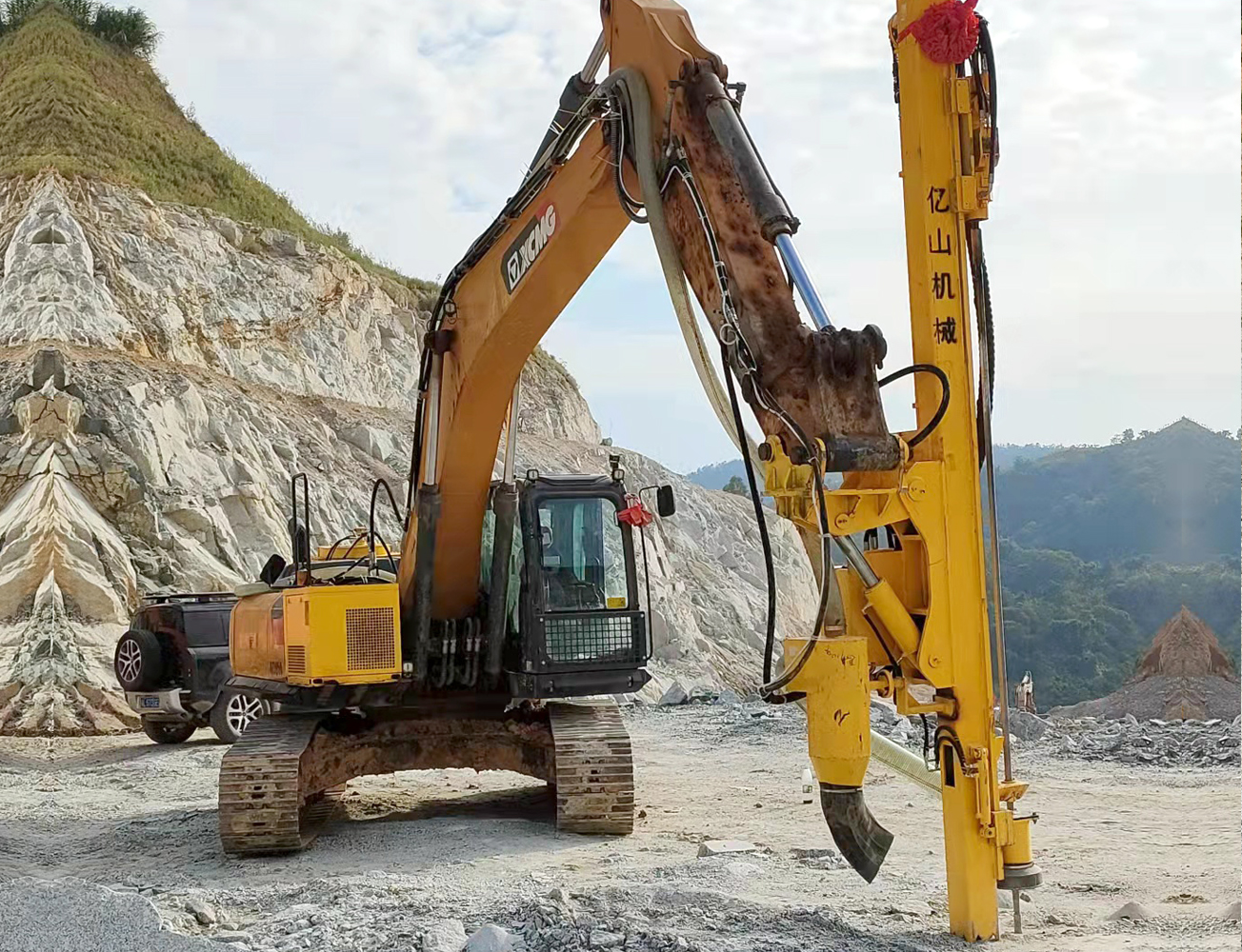 億山ES300挖改全液壓鑿巖機,廣泛適用于花崗巖、石灰石、大理石、火山石、青石、玄武巖等硬度較高的堅巖石的各種爆破前鉆孔作業(yè)(硬度F大于6級);可以借助挖機的操作靈活性用于錨桿鉆孔;也遠遠低于一體式鑿巖鉆機的采購價格。具操作簡易,設計人性化,感觀直接,實現(xiàn)挖掘機一機多用等特性。