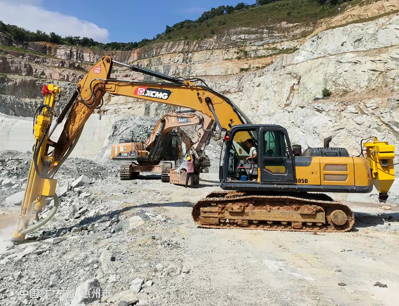 廣東惠州--徐工挖掘機改裝鑿巖機(定制38-90mm)