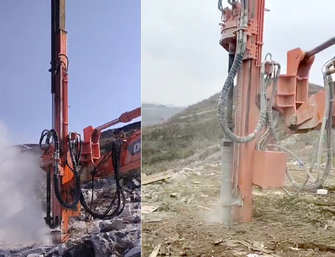 億山挖改潛孔鉆機各系列產品,廣泛適用于花崗巖、石灰石、大理石、火山石、青石、玄武巖、頁巖、砂巖、風化巖、泥巖等所有巖石的各種爆破前鉆孔作業(yè);借助挖機的操作靈活性也可用于錨桿鉆孔以及孔徑較大的光伏孔;使用效率高于傳統(tǒng)的分體式潛孔鉆機。具操作簡易,設計人性化,感觀直接,實現(xiàn)挖掘機一機多用等特性。