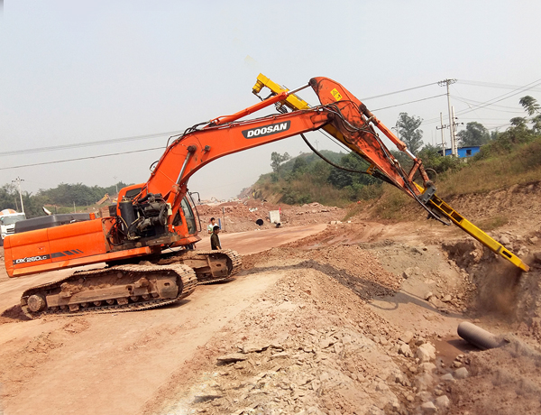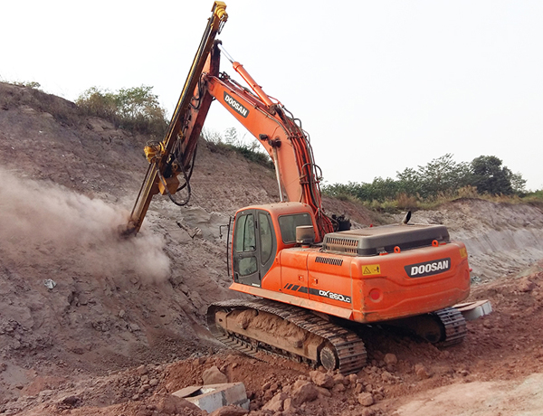 挖機(jī)改鉆機(jī)為您開啟了新的施工方法。挖斗+破碎錘+切削鉆機(jī)+鑿巖鉆機(jī)+潛孔鉆機(jī),一機(jī)多用,為您降低成本。無(wú)論您是從事采石業(yè)、采礦業(yè)、土建工程、鋼鐵工業(yè)、隧道工程或路橋工程,在許多傳統(tǒng)方法失效或成本高的地方,您都可以借助這靈活、耐用、噪音小且震動(dòng)低的特種機(jī)器。