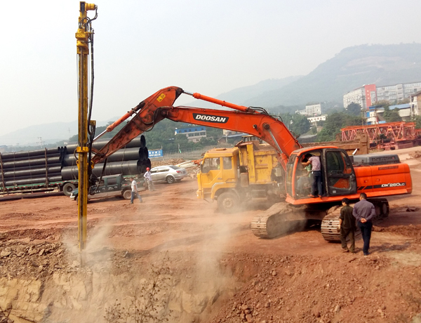 重慶九龍坡-斗山挖機(jī)改切削鉆機(jī)(90孔6米)-1分鐘2-3米