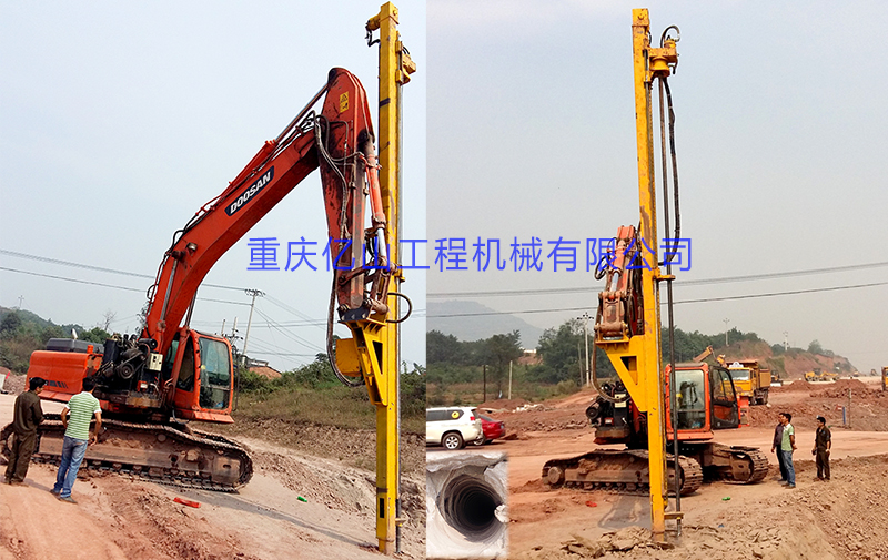 2、前后左右自由伸展,當(dāng)挖掘機(jī)在工地不平坦的情況下, 挖機(jī)手可根據(jù)位置不同調(diào)整鉆桿角度,保持90°垂直鉆孔。